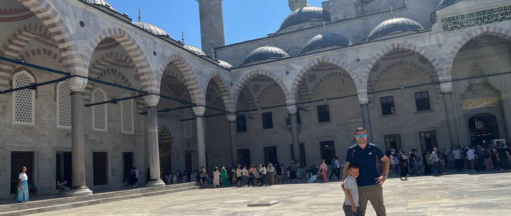 Istanbul is one of those cities that instantly grabs you — the calls to prayer echoing over the rooftops, the spice-scented air in the markets, the shimmering Bosphorus waters catching the sunlight. Visiting with our young son Joshua at the end of August was a mix of awe, adventure, and a fair bit of negotiating snack breaks. It’s lively, colourful, and full of history, and easy to navigate by foot if you are staying centrally.