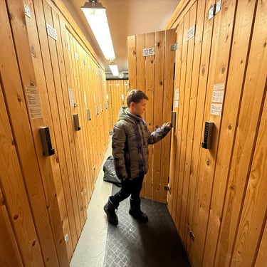 Start layering up around 9:00am – head down to the Ski lockers about 9.15am which were located conveniently within our building
