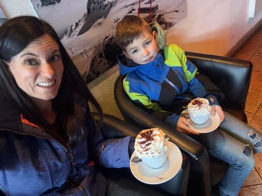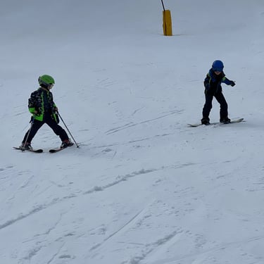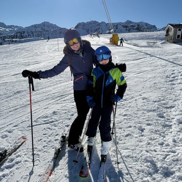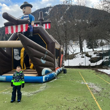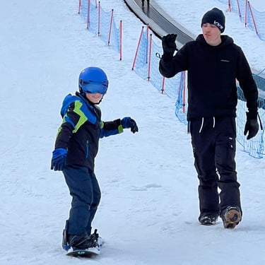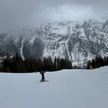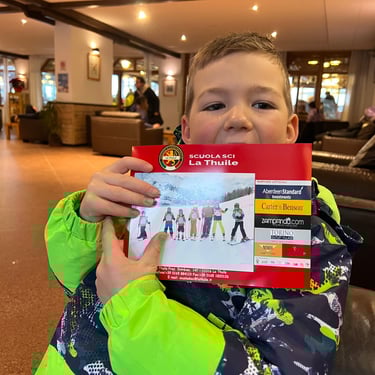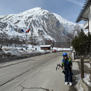 One fun twist during our trips was that we even rented Joshua a snowboard for an afternoon. He gave it a go on the beginner slopes, and it was a great way for him to try something different without feeling pressured. The gentle runs in La Thuile made it easy for him to get the hang of it, and he loved having a little change from skiing.