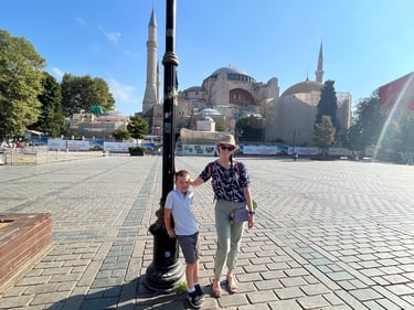 We stepped out of the hotel and within five minutes we were standing between Hagia Sophia and the Blue Mosque, which honestly felt surreal. Staying in Sultanahmet was such a good call — everything was walkable, which made life infinitely easier with a six-year-old.