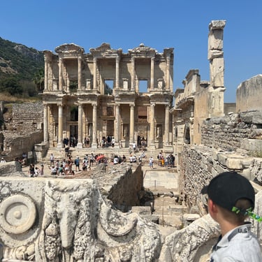Ephesus doesn’t feel like “ruins”. It feels like an actual ancient city you’ve accidentally walked into. Huge marble streets. The Library of Celsus towering above you. A theatre so big you can’t quite believe how old it is. Joshua loved that he could properly explore rather than just look at things behind ropes.