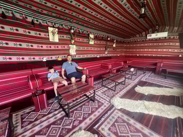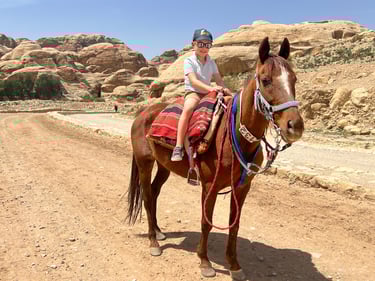 We returned to our hotel around 2pm to rest before returning for Petra by Night. That break was essential. On the return journey from the Treasury toward the entrance, Joshua took a short horse ride, which shaved roughly 20 minutes off the walk and conserved energy for the evening. Animal rides are widely available throughout Petra — horses near the main entrance, and donkeys (and occasionally mules) operating deeper inside the site, particularly on the climb toward the Monastery. While walking is often quicker and gives you more control over pace, these rides can be useful if a child becomes unexpectedly fatigued. As with any animal-based activity, parents should assess comfort levels, safety and cost clearly before agreeing, but it is reassuring to know that support options are available if little legs begin to struggle.