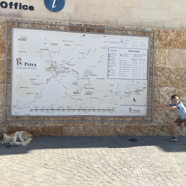 At the time of our visit, the elevated Treasury viewpoint trail (often referred to as the Al-Khubtha viewpoint, which overlooks the Treasury from above) was closed for construction. This is the iconic “view from the top” photo many people associate with Petra. Had it been open, we would likely have needed to plan two days in Petra — not because of time constraints, but because of stamina. Combining the Monastery climb, the Treasury viewpoint ascent and the core walking route in a single day would have been a resilience challenge for a school-age child. If seeing both major climbs is a priority for your family, I would strongly recommend a two-day ticket to spread the physical effort more realistically.
