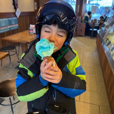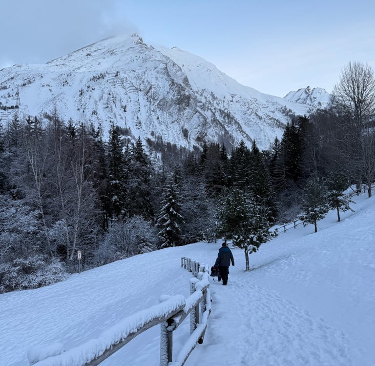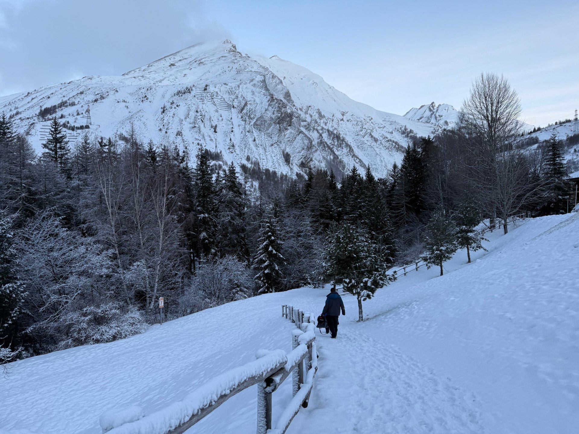 The apartment was slightly further from the slopes (approx. 10-minute walk), but the walk was a beautiful snowy tree path, and Joshua loved playing along the way.